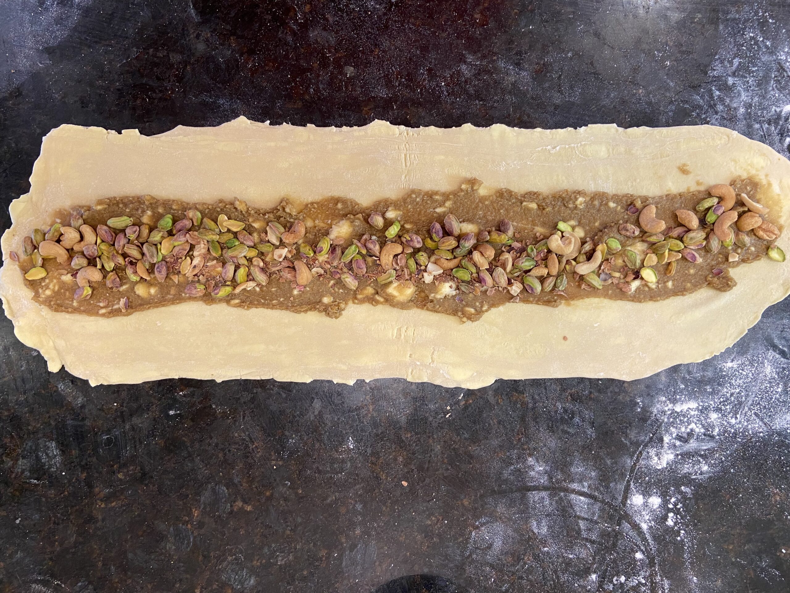 - For each kringle, spread filling across center ⅓ of dough, lengthwise.